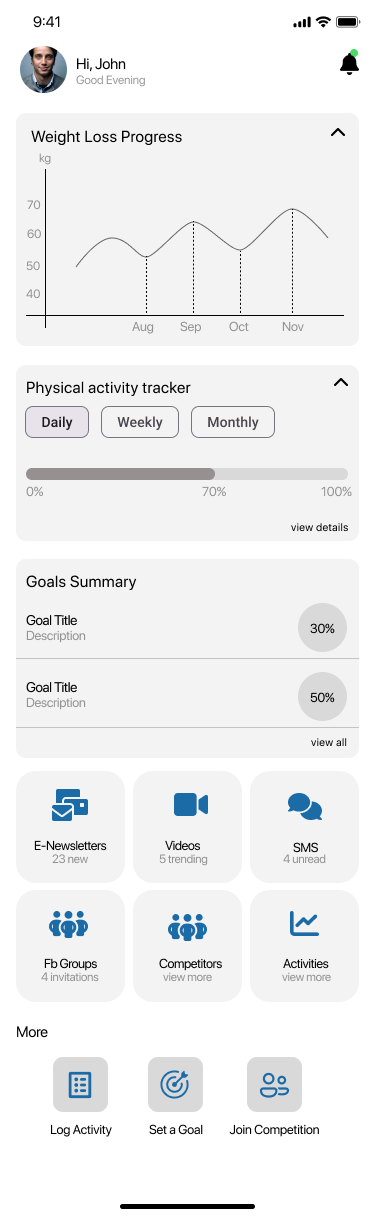Weight Loss Progress Tracking: Visualize your weight loss journey through detailed graphs and progress reports, tailored to your individual goals.