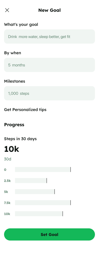 Set new goals regularly and receive reminders and feedback to help you achieve them.